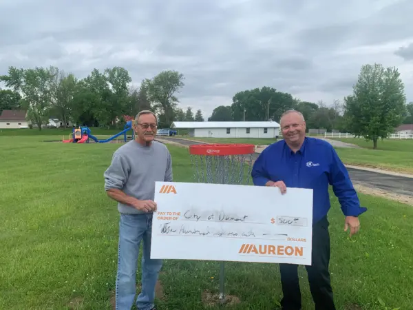 Dumont Telephone Company and Aureon recently presented a $500 check toward the City of Dumont Disc Golf, Soccer Goals and Pickleball Net project.
