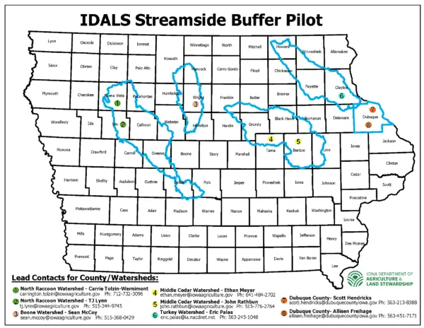 Farmers and landowners in Grundy County, parts of Franklin, Butler, Hardin, and Wright counties now have a chance to improve water quality along local streams through a new state-funded pilot program. Iowa Secretary of Agriculture Mike Naig announced the Streamside Buffer Initiative Monday, aimed at adding perennial buffers in the Middle Cedar and Boone watersheds.