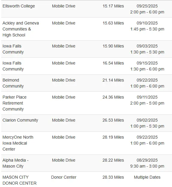 A list of local locations and times for upcoming mobile blood drives is listed below: