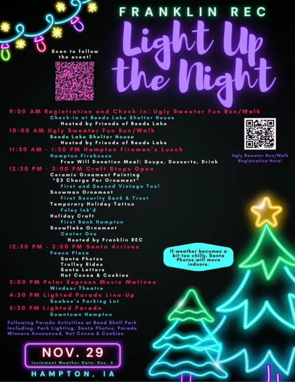 Franklin REC’s fifth annual Light Up the Night event is Saturday, November 29th, a full day packed with holiday fun.