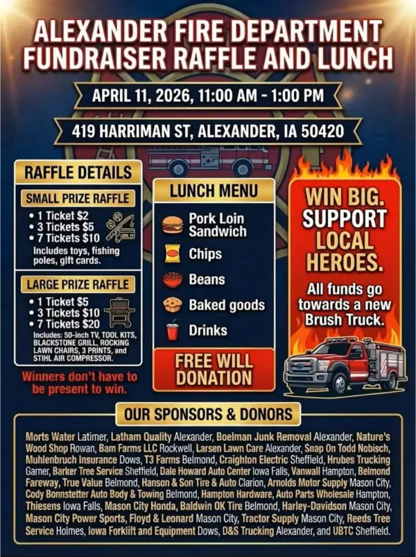 Alexander Fire Department’s Fundraising Meal and Raffle