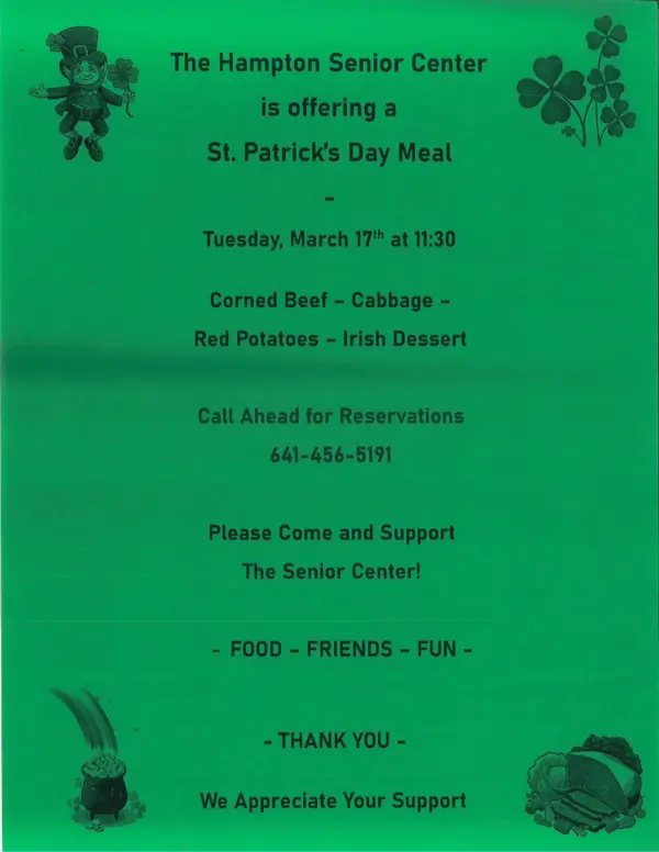Hampton Senior Center’s St. Patrick’s Day Meal